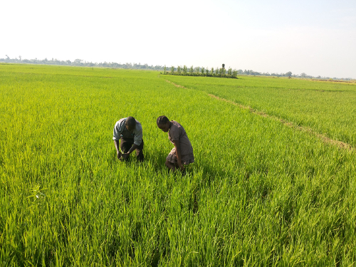 Tending to a rice garden in the Doho Rice Scheme, Butaleja District
